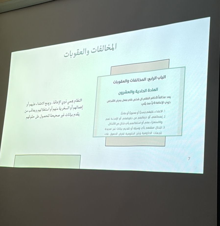 التوعيه بحقوق ذوي الاعاقه وعرض المرسوم الملكي الصادر عن حقوق حقوق ذوي الاعاقه وتوزيع نسخ الكترونيه بلائحة حقوق ذوي الاعاقة….
