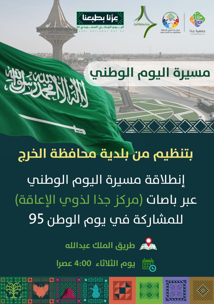بمناسبة اليوم الوطني أنطلقت مسيره اليوم الوطني عبر باصات مركز جذا ملوحة بأعلام المملكة العربية السعودية