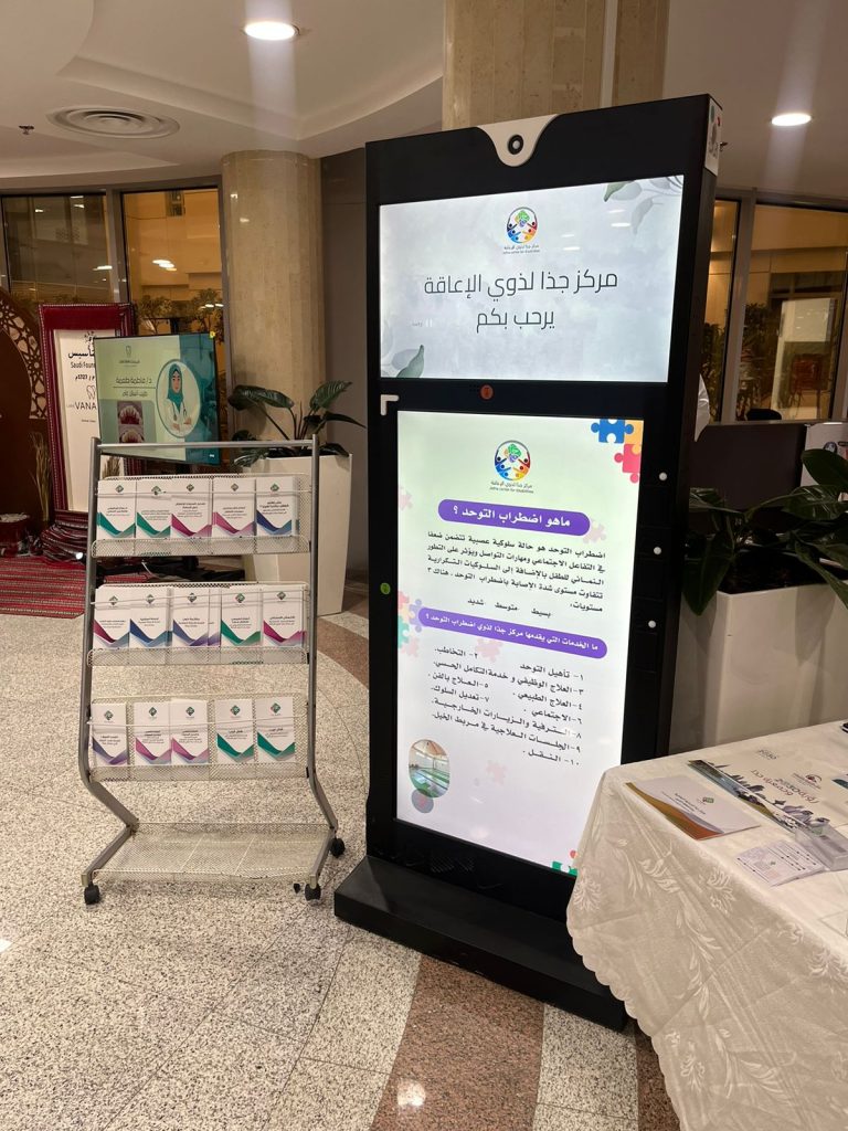 أقام مركز جذا لذوي الإعاقة ركنًا تعريفيًا بمتلازمة داون في بلدية محافظة الخرج ، بهدف نشر الوعي وتعريف الزوار بطبيعة المتلازمة وطرق التعامل الصحيح معها.